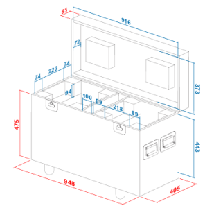 - Holds two 9RE Beam moving heads or similar, and also features an accessory compartment